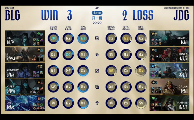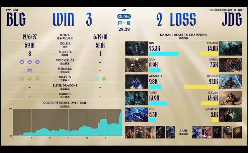 BLG 3-2 JDG:冰鸟辅助出奇效,BLG鏖战五局挺进先锋赛